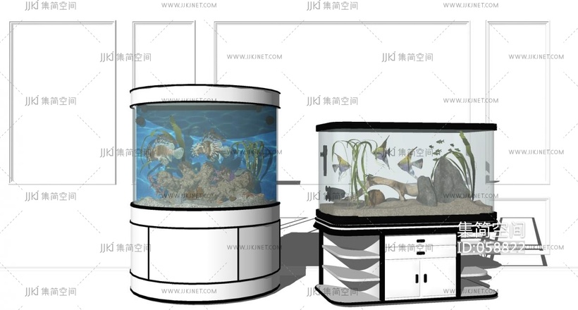 (2)现代橱柜鱼缸海草水族箱 su草图模型下载 [模型ID:58822]