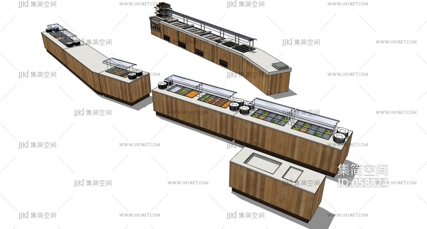 (4)现代自助餐餐厅食堂展柜柜台 su草图模型下载 [模型ID:58824]