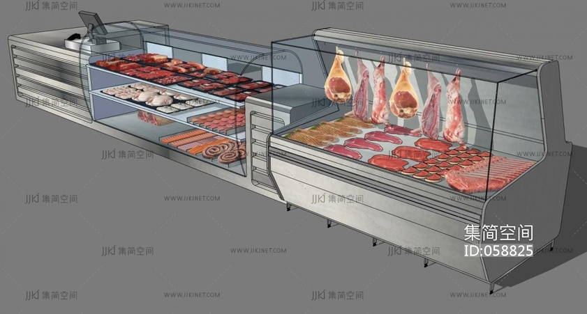 (5)现代肉类生肉火腿柜台展柜收银台保鲜冷藏柜 su草图模型下载 [模型ID:58825]