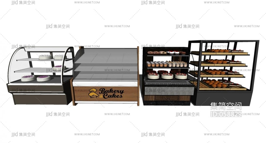 (9)现代甜品蛋糕糕点店展柜保鲜冷藏柜展示柜 su草图模型下载 [模型ID:58829]
