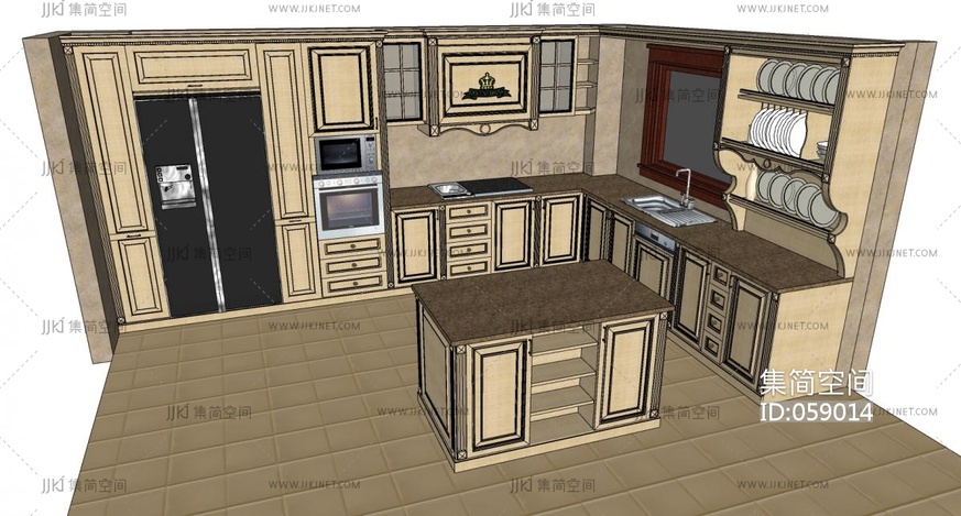 6欧式法式美式实木橱柜水槽烤箱组合橱柜厨房 su草图模型下载 [模型ID:59014]