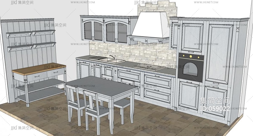 16意大式北欧厨房餐桌椅水槽橱柜吸油烟机组合 su草图模型下载 [模型ID:59022]