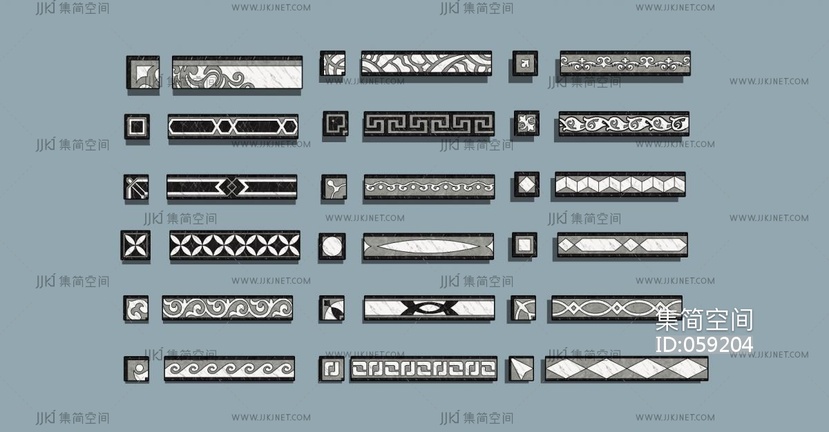 01中式石材拼花万字纹圈边万字纹欧式卷草纹角花 su草图模型下载 [模型ID:59204]