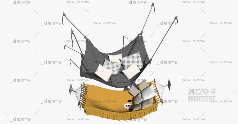 现代室外吊床吊椅 秋千 su草图模型下载 [模型ID:60408]