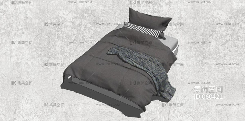 23现代北欧简约单人床 su草图模型下载 [模型ID:60421]