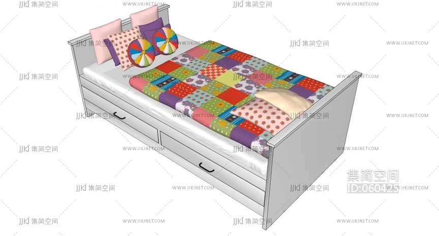 4现代简约单人床儿童床女孩房抱枕 su草图模型下载 [模型ID:60425]