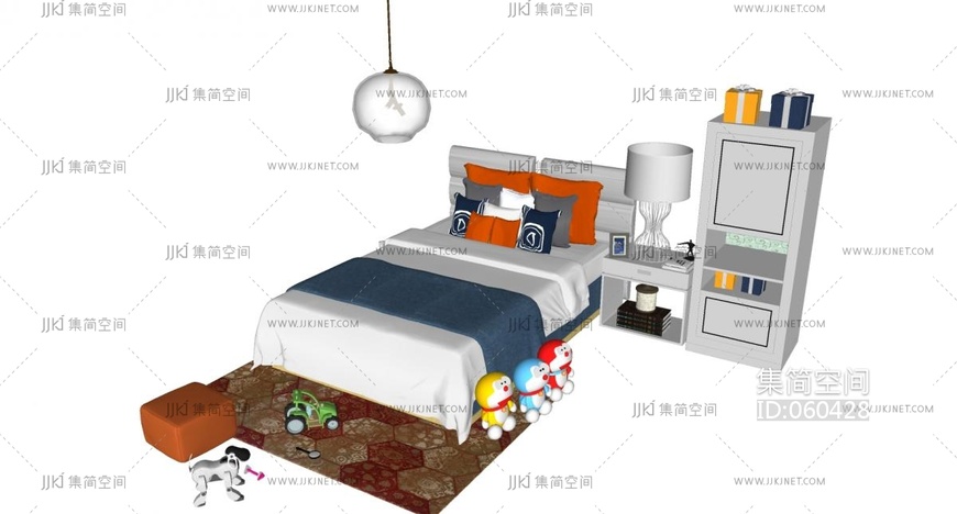 14北欧简约儿童房儿童床床头柜金属铁艺台灯吊灯机器猫儿童玩具组合 su草图模型下载 [模型ID:60428]