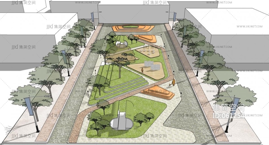 1 公园景观规划鸟瞰剪影树 su草图模型下载