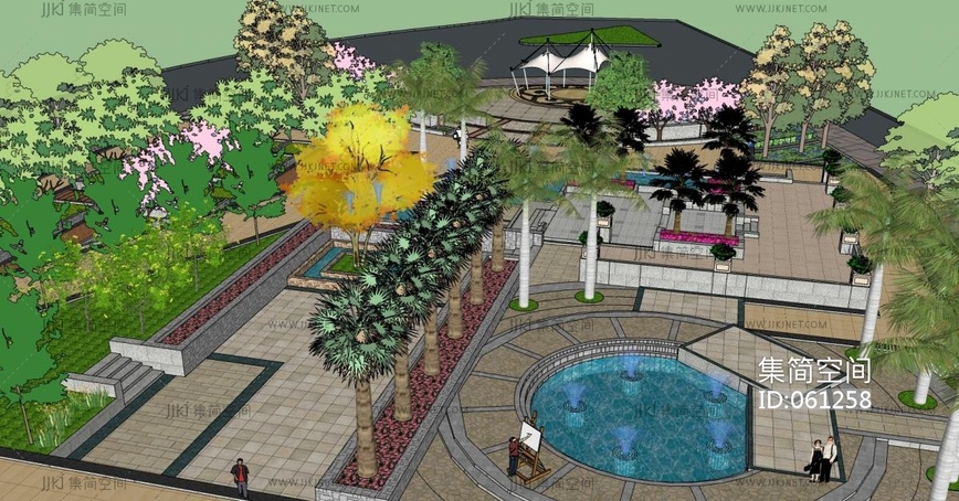 100公园景观规划树池水景扎拉莫椰子树树池 su草图模型下载 [模型ID:61258]
