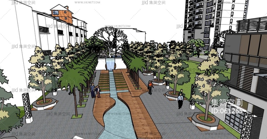 200中式住宅小区景观街道水景观水系植物树 su草图模型下载 [模型ID:61265]