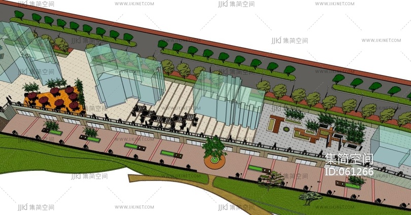 201园区景观规划树池户外景观座椅围墙 su草图模型下载 [模型ID:61266]