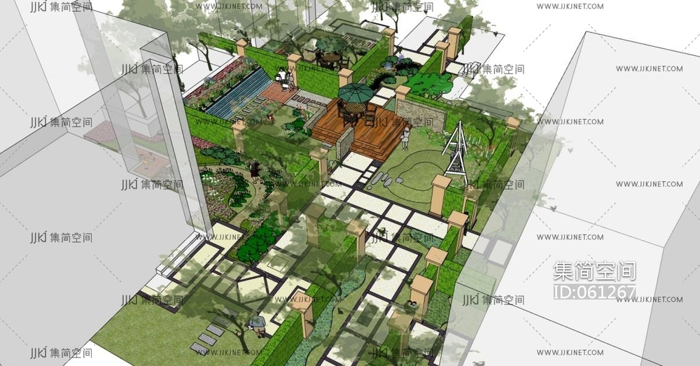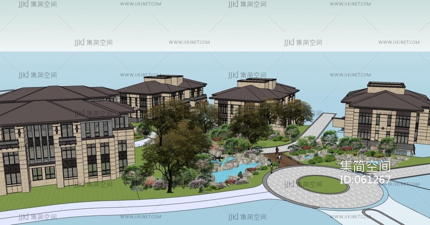 bl 别墅景观庭院小区规划植物树水系石头水景 su草图模型下载 [模型ID:61267]