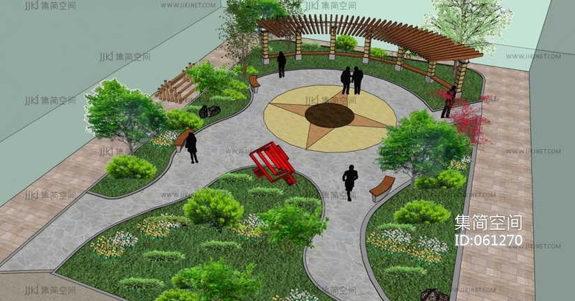 cj 公园景观鸟瞰廊架 su草图模型下载 [模型ID:61270]