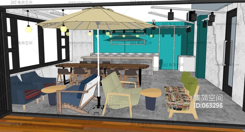 1现代简约室外户外咖啡厅单人实木桌子沙发椅子遮阳伞 su草图模型下载 [模型ID:63296]