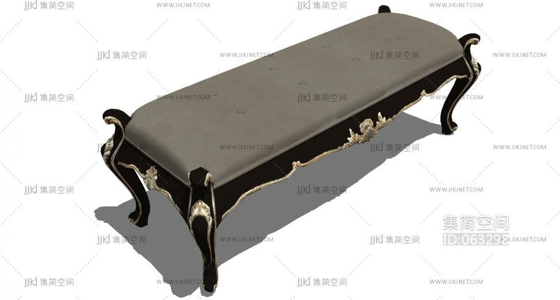 2欧式法式美式金属雕花沙发凳床尾凳脚踏 su草图模型下载 [模型ID:63298]