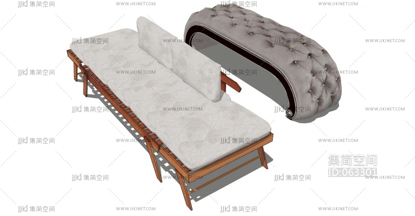 4现代简约实木欧式法式皮革雕花床尾凳沙发凳 su草图模型下载 [模型ID:63301]