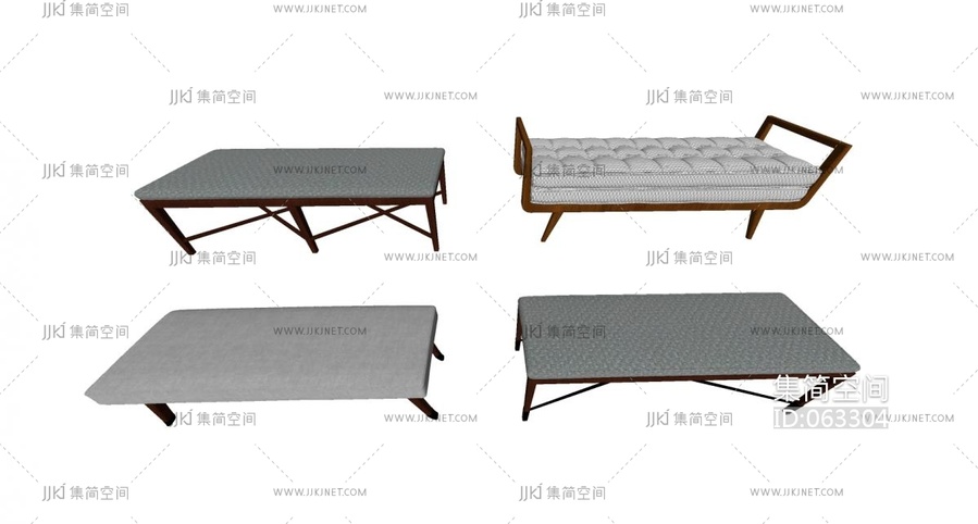 6现代新中式实木床尾凳长椅组合 su草图模型下载 [模型ID:63304]