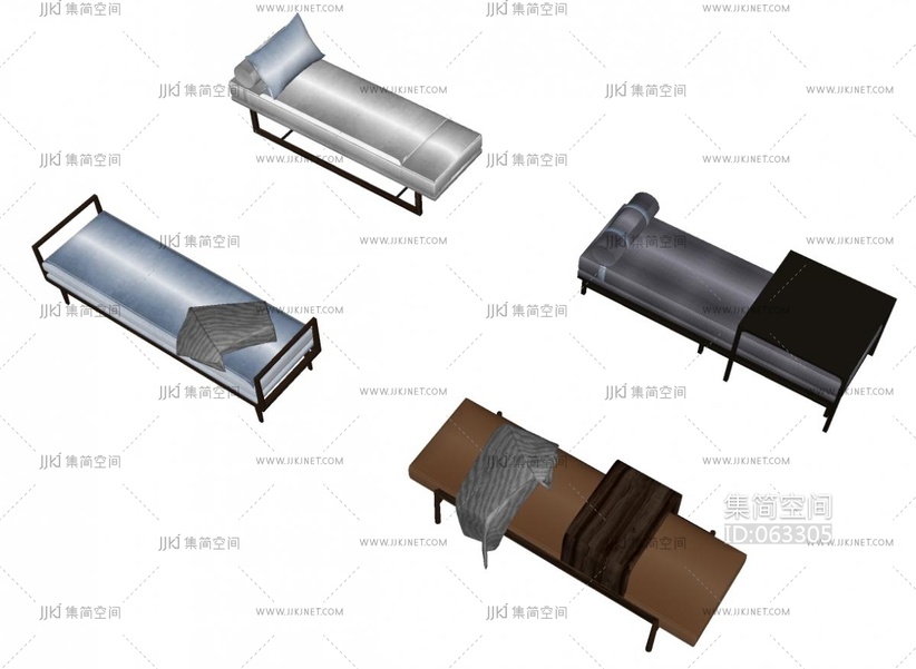7新中式实木床尾凳卧榻 su草图模型下载 [模型ID:63305]