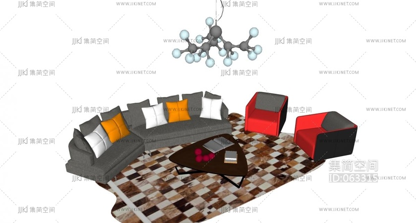 11现代简约单人沙发多人异形弧形沙发茶几吊灯组合 su草图模型下载 [模型ID:63315]