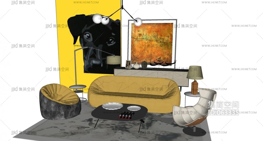 22北欧现代简约单人沙发椅子多人沙发茶几边柜吊灯组合 su草图模型下载 [模型ID:63335]