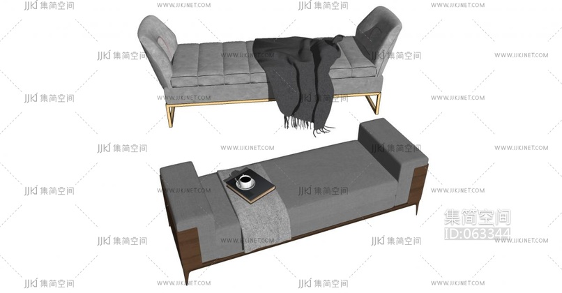 32现代轻奢简欧式新古典北欧床尾椅床榻组合 su草图模型下载 [模型ID:63344]