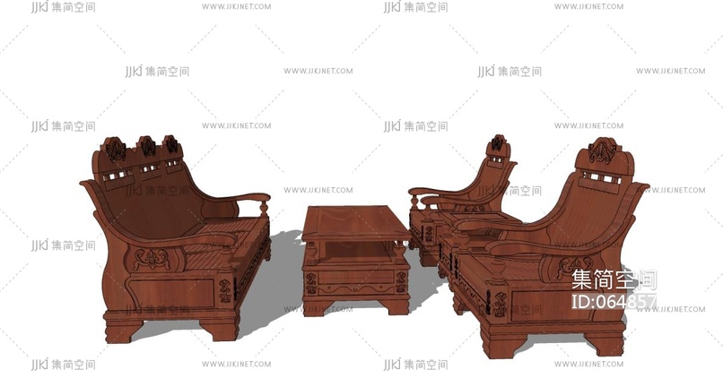 gf 中式古典实木家具沙发茶几 su草图模型下载 [模型ID:64857]