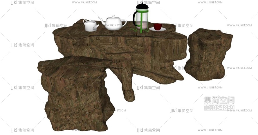 HG60中式木疙瘩茶海茶台茶桌 su草图模型下载 [模型ID:64859]