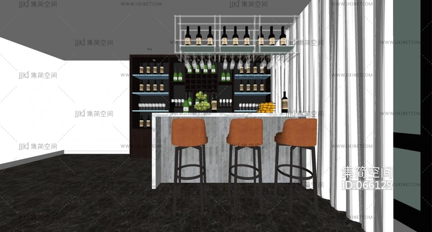 北欧吧台椅子酒架酒柜组合 su草图模型下载 [模型ID:66129]