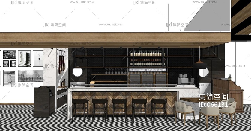 工业风北欧吧台吧椅沙发茶几酒柜组合 su草图模型下载 [模型ID:66131]