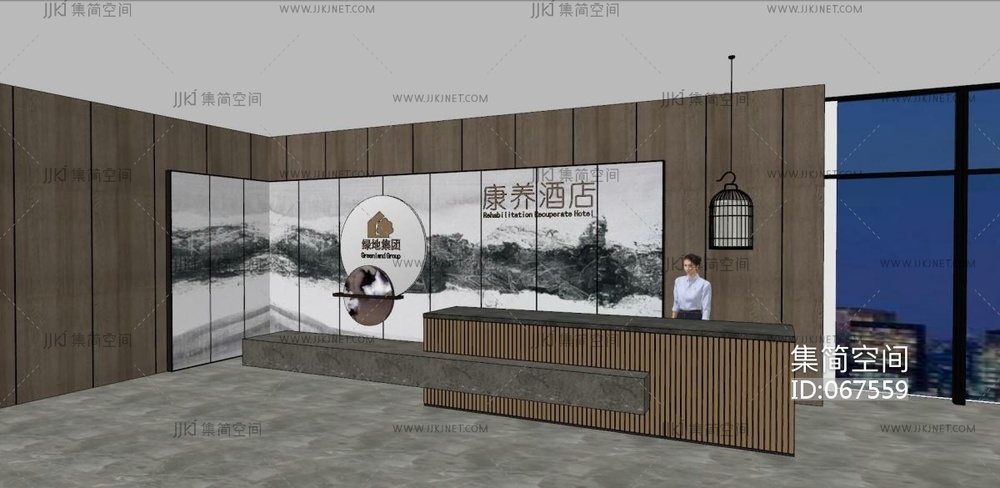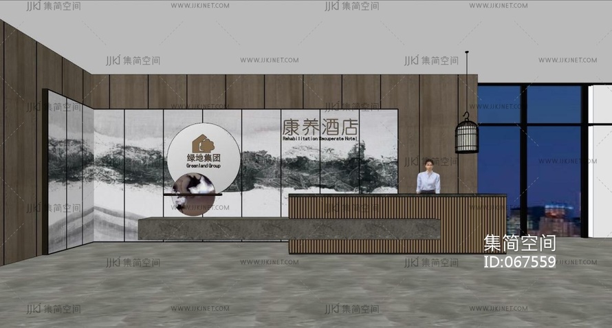 酒店接待大厅酒店大堂酒店大厅服务台接待台SU模型su草图模型下载