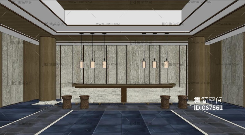 17现代新中式酒店会所前厅接待台 su草图模型下载 [模型ID:67561]