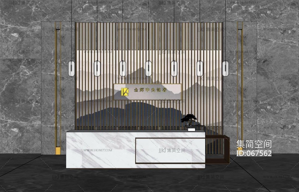 17现代新中式酒店会所前厅接待台su草图模型下载