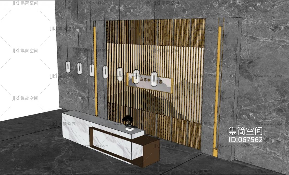 酒店接待大厅酒店大堂酒店大厅服务台接待台SU模型su草图模型下载