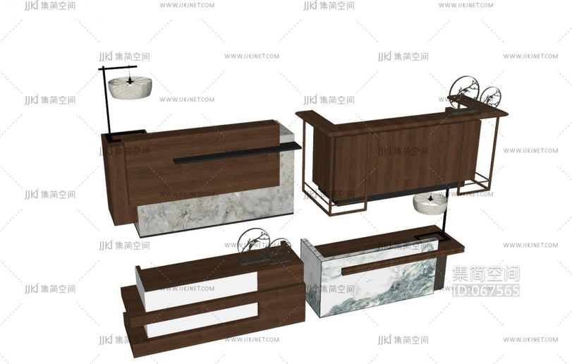 17现代新中式酒店会所前厅接待台su草图模型下载