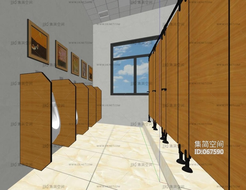 现代酒店公共卫生间,su草图模型下载