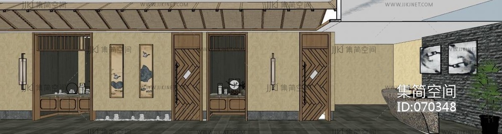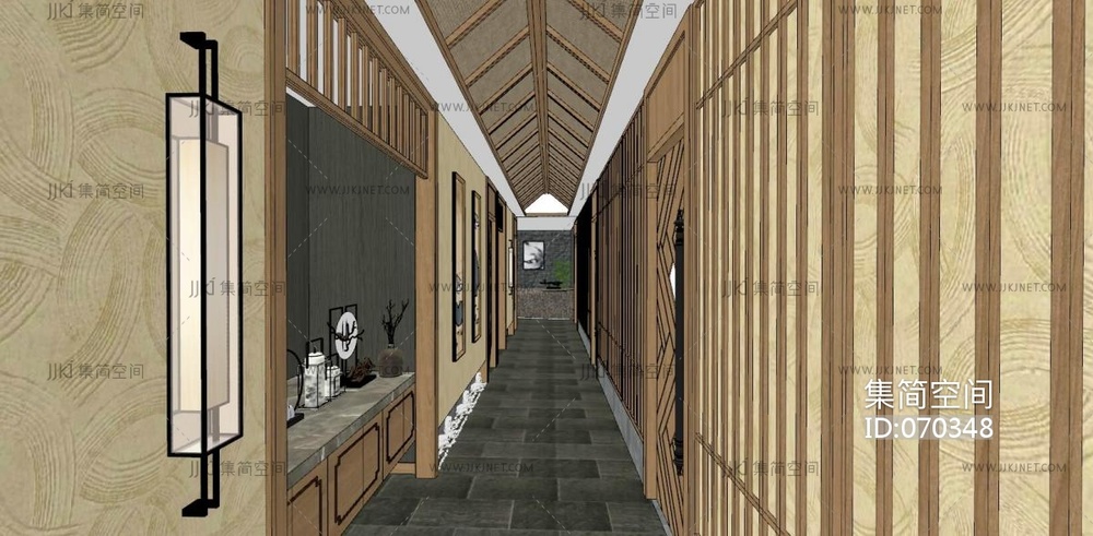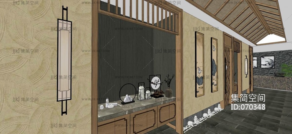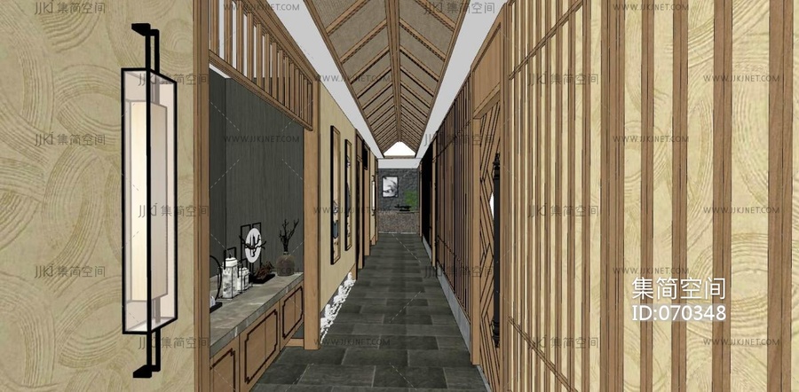 新中式玄关走廊SU模型下载 su草图模型下载 [模型ID:70348]