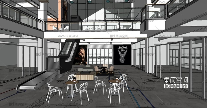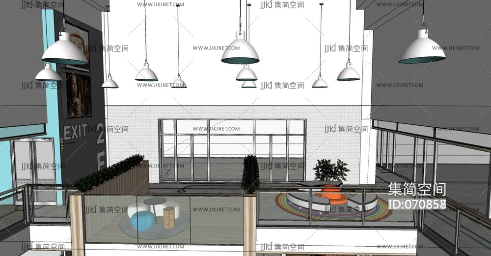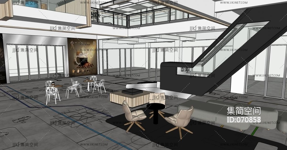 08现代办公休息区,异形公共座椅 (1)su草图模型下载