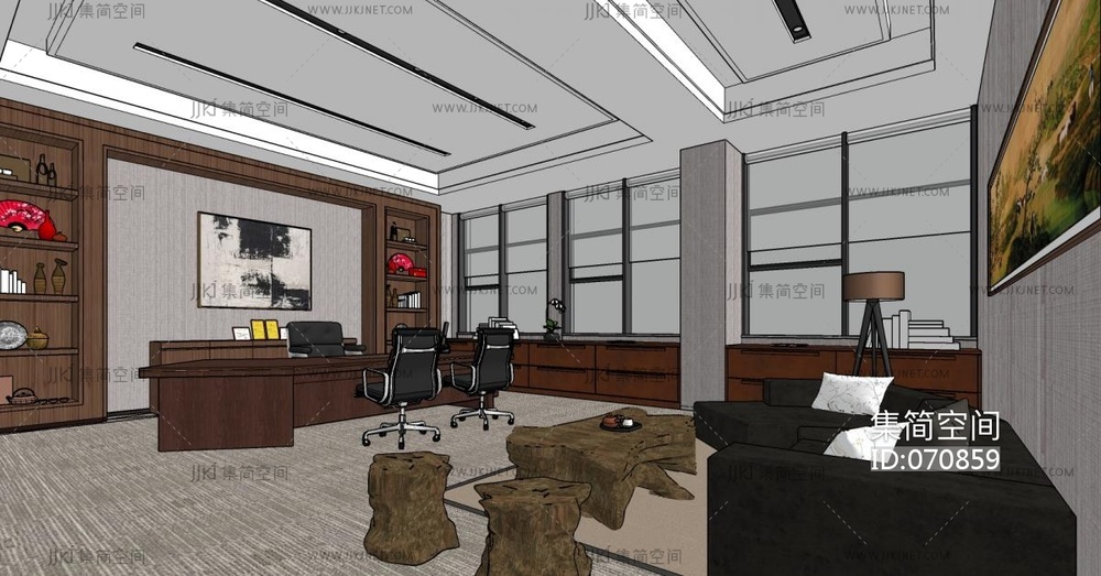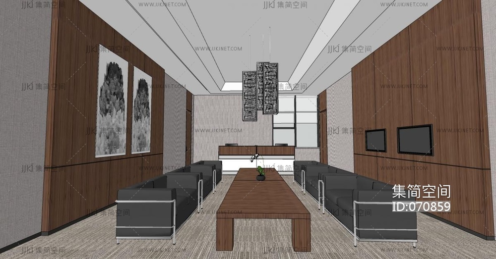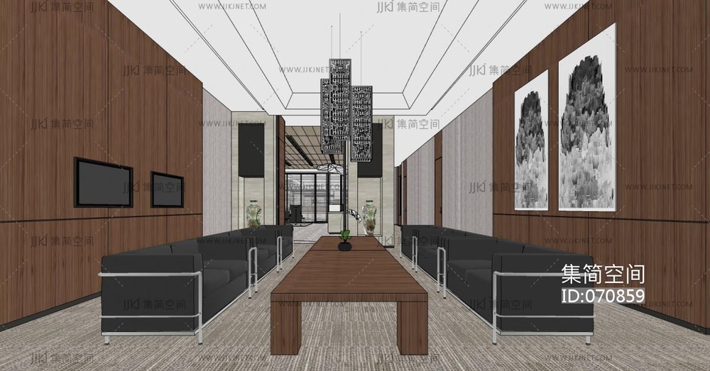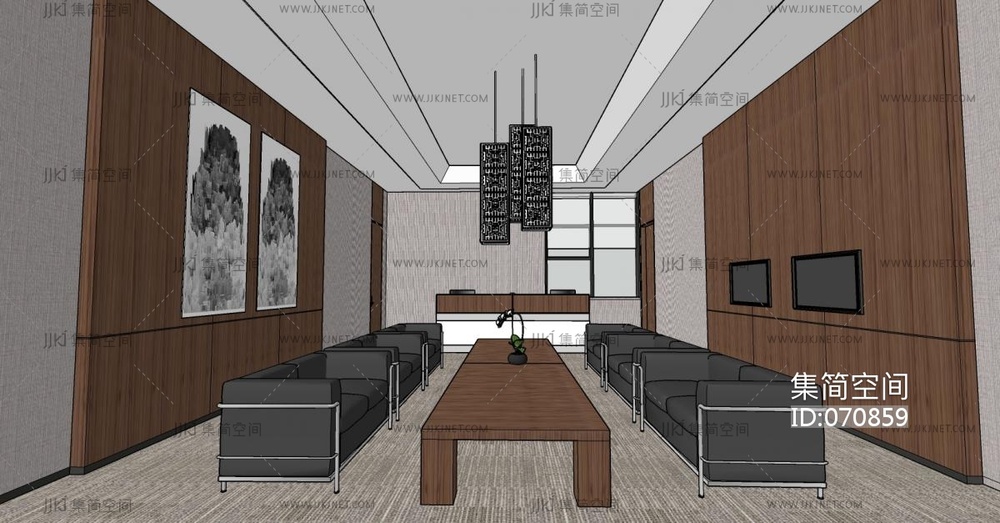 08现代办公休息区,异形公共座椅 (1)su草图模型下载