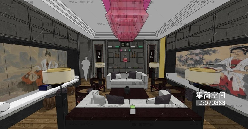 新中式大堂休息区su草图模型下载
