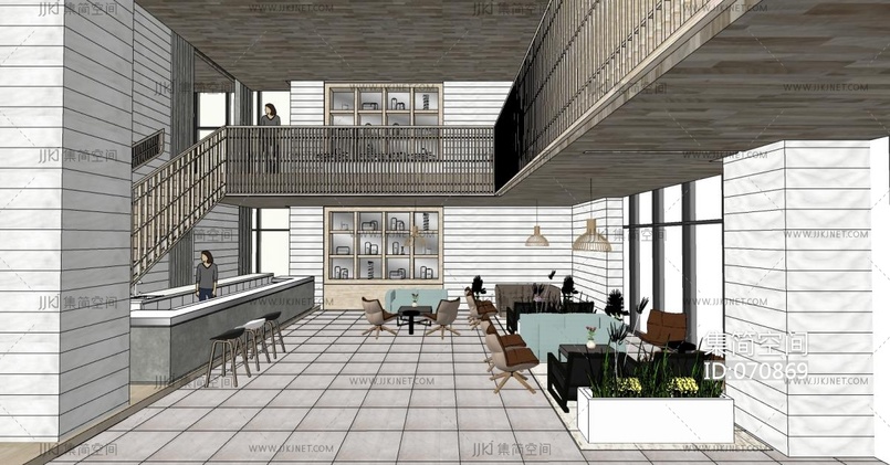 08现代办公休息区,异形公共座椅 (1)su草图模型下载