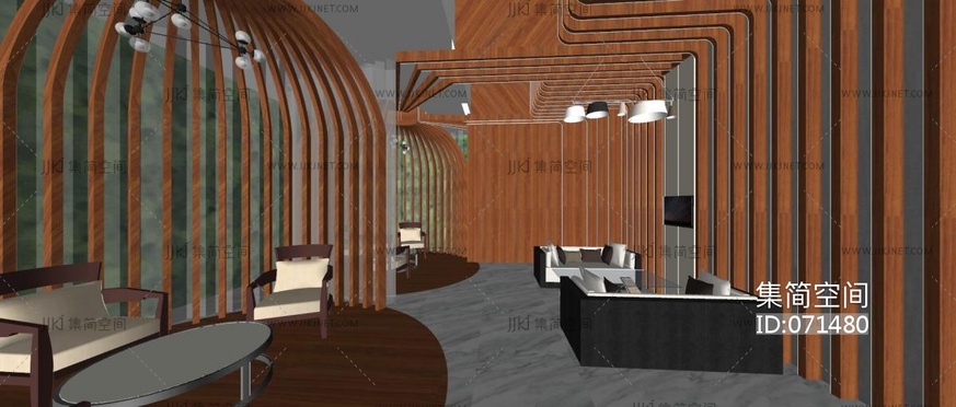 新中式酒店接待区,su草图模型下载