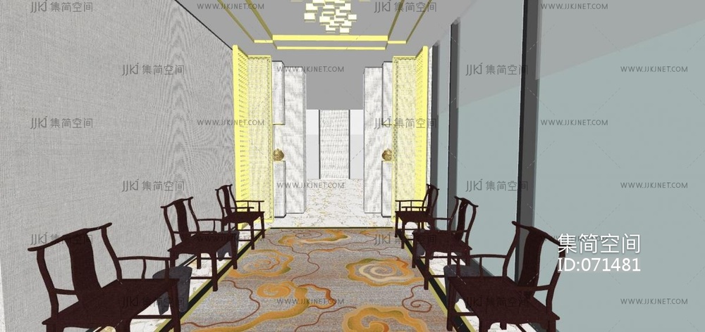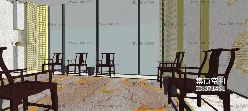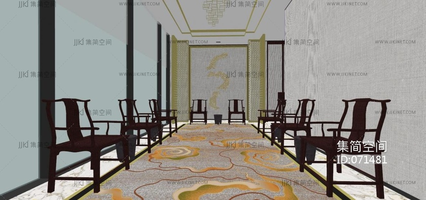 新中式酒店大堂接待处卡座SU模型su草图模型下载