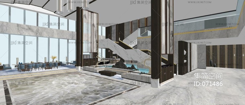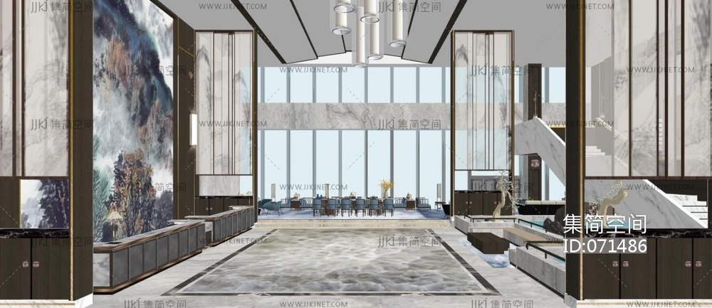 新中式大堂接待厅 su草图模型下载