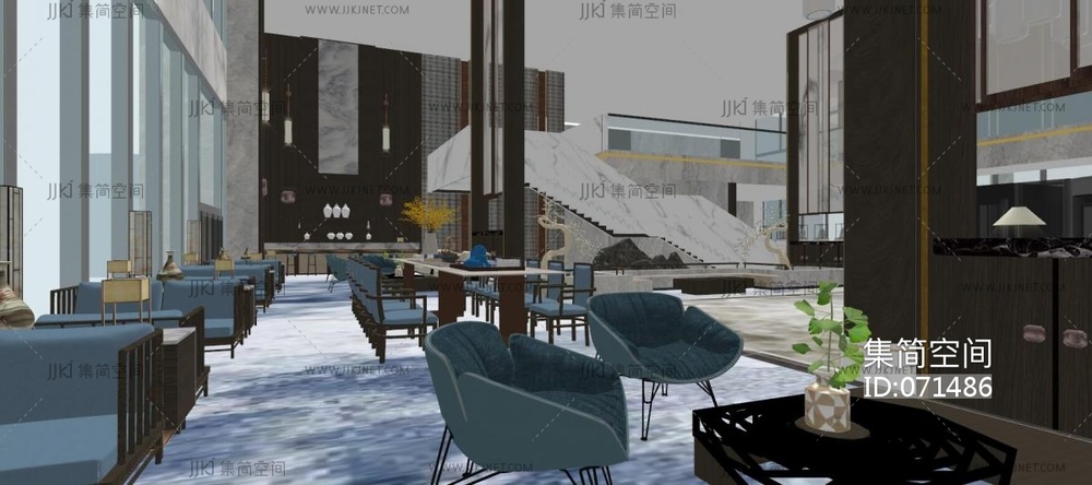新中式酒店接待区,su草图模型下载