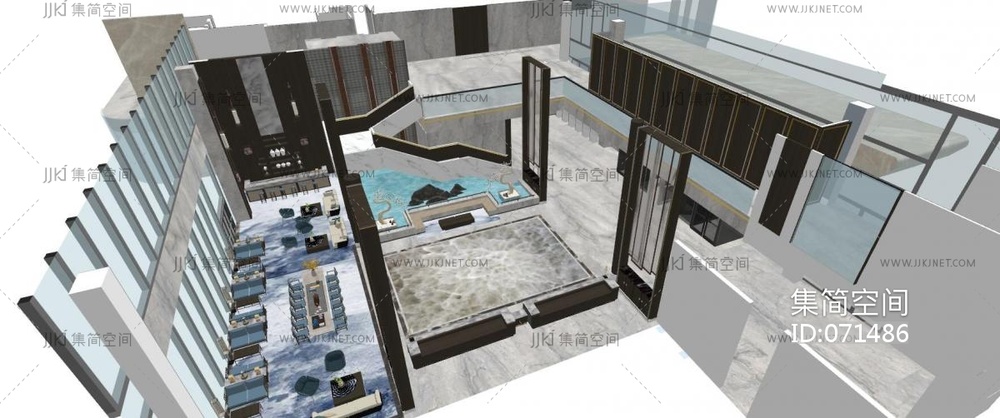 大堂接待区 su草图模型下载 [模型ID:71486]