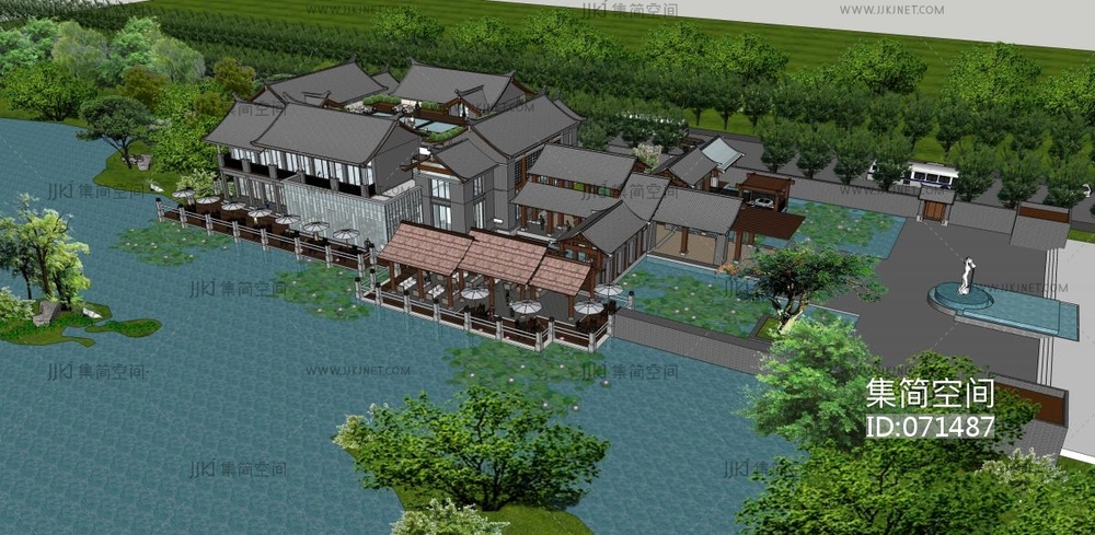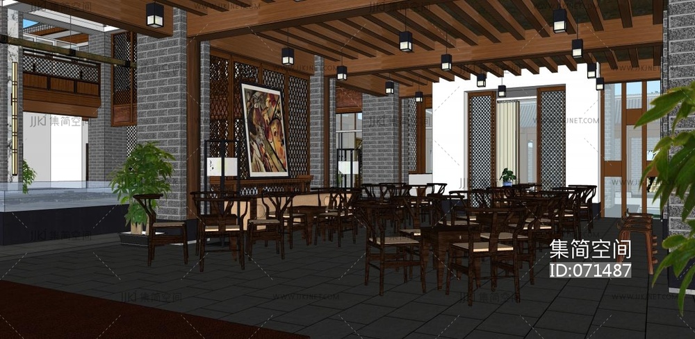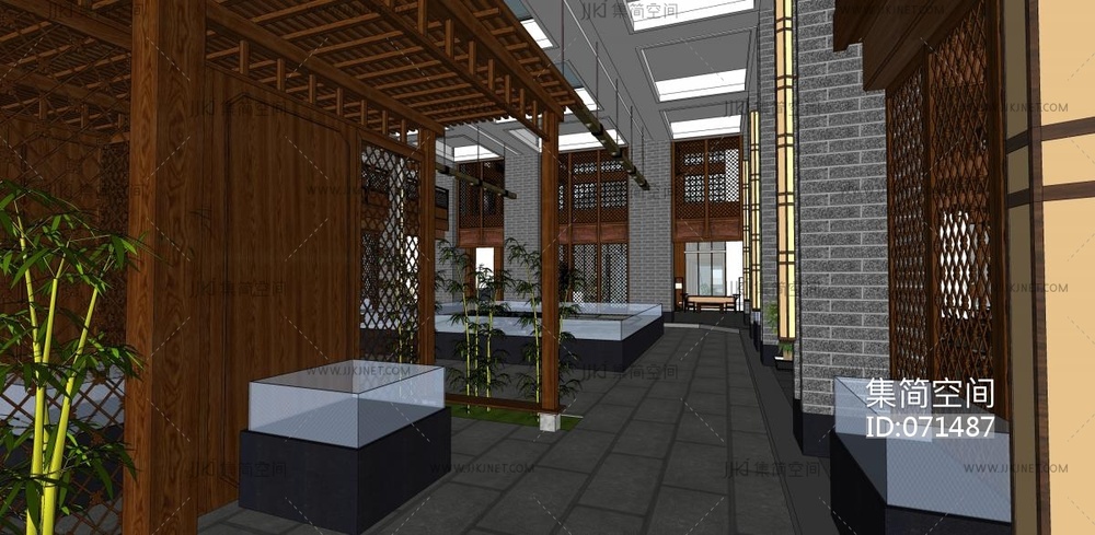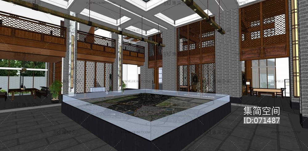 新中式酒店大堂接待处卡座SU模型su草图模型下载