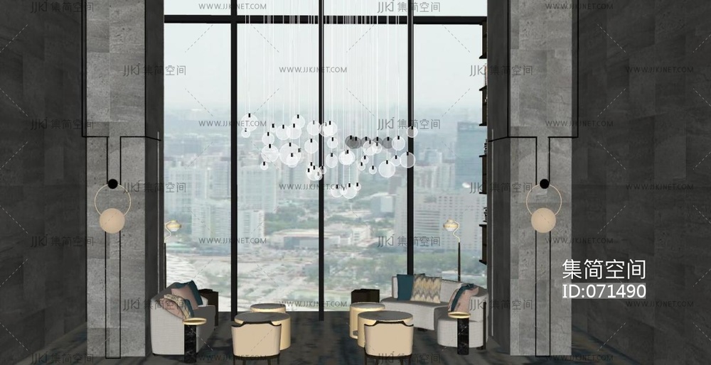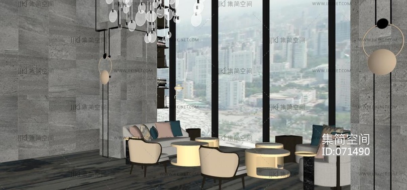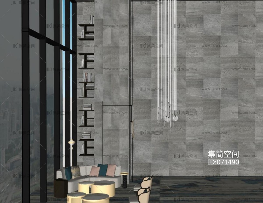 新中式酒店大堂接待处卡座SU模型su草图模型下载