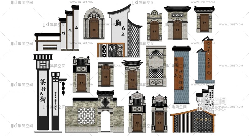 173-门楼斗拱-古建门楼斗拱 门楼-中式门楼古建 马头墙冬瓜梁 中式商铺门面 徽派街边商铺建筑 酒楼 茶馆 民宿酒店su草图模型下载