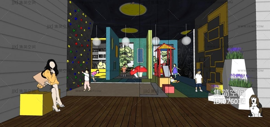 129儿童活动区,运动区,滑梯玩具,乒乓球桌,儿童攀岩设施,家长等候区 su草图模型下载 [模型ID:76014]