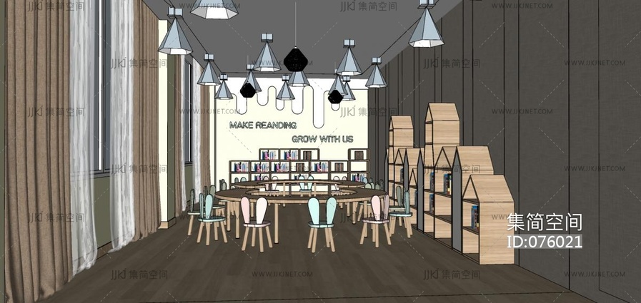 136儿童图书阅览室,儿童可爱桌椅,儿童趣味图书柜 su草图模型下载 [模型ID:76021]